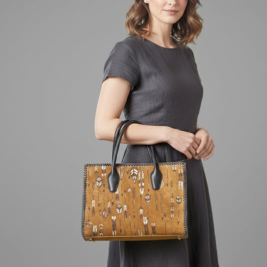 ADBGM556 Western Arrow Embroidered Genuine suede Tote - Hand-Laced Leather Trim Cowgirl Handbag
