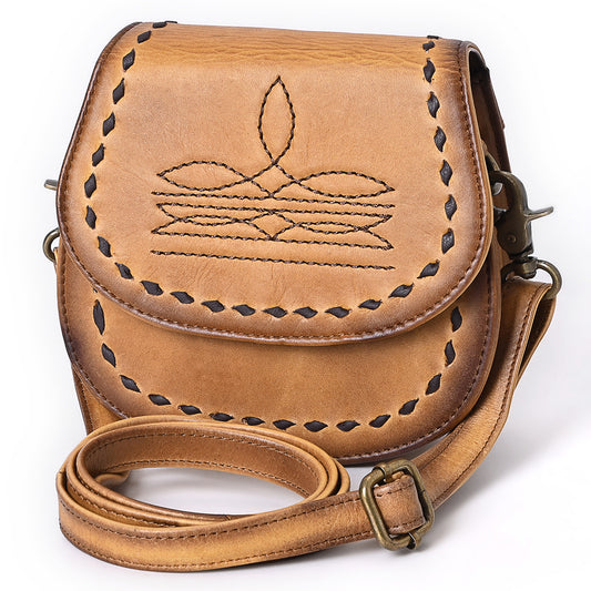 ADBGM592 Western Stitch Leather Crossbody - Cowgirl Saddle Purse