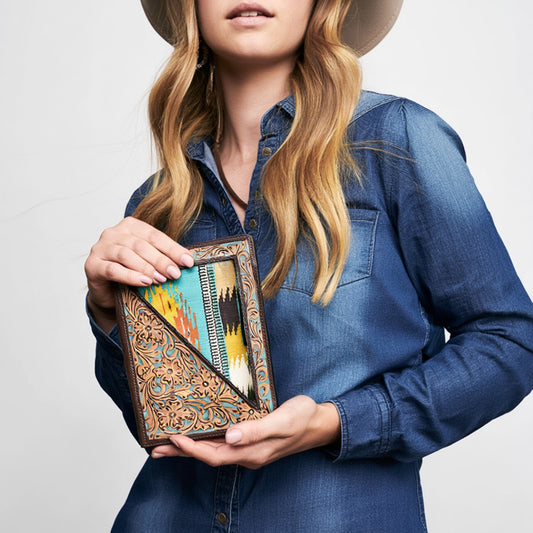 ADBG1160 American Darling Tooled Leather Portfolio Bag | Saddle Blanket Tablet Sleeve