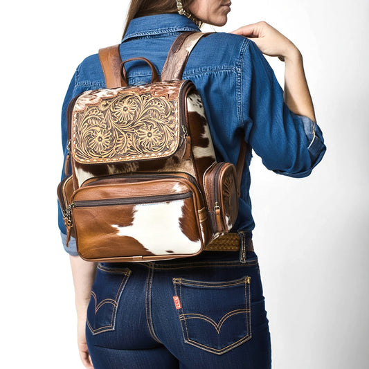 ADBG1157 American Darling Cowhide & Tooled Leather Backpack | Western Travel Bag