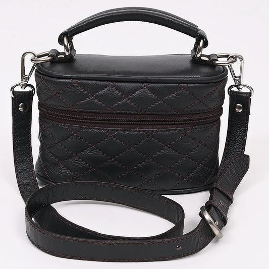 ADBGZ1032 Black Quilted Leather Mini Jewelry Case with Top Handle