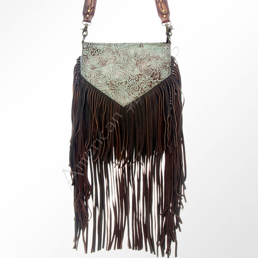 ADBGZ124 Cowhide Messenger Bag with Fringe and Tooled Leather Flap