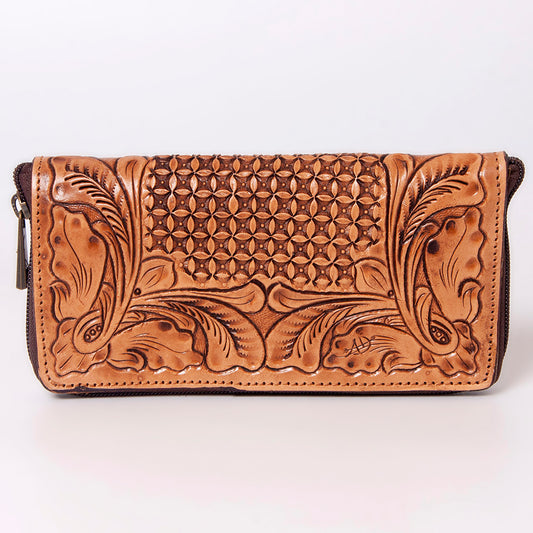 ADBGZ362 Tooled Leather Zip Wallet - Western Floral & Basket Weave Design