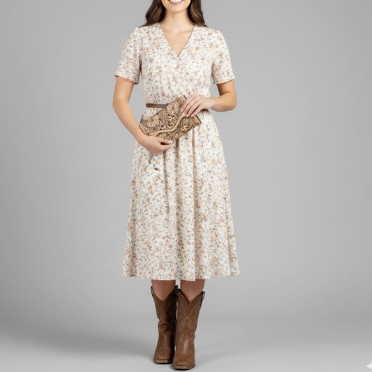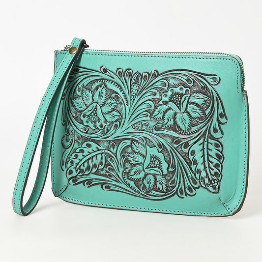 ADBGZ784 Hand-Tooled Leather Wristlet Clutch - Western Floral Design