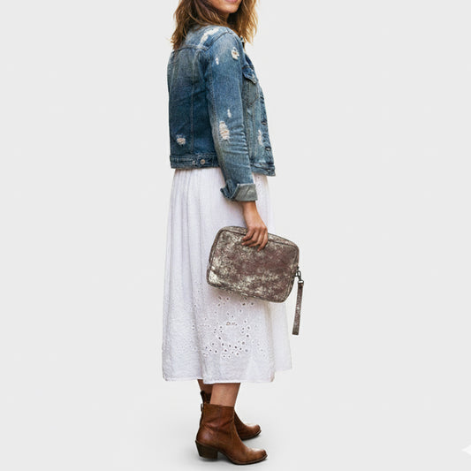 ADBGZ778 Western Distressed Metallic Leather Crossbody - Silver-Foiled Sling Bag