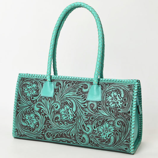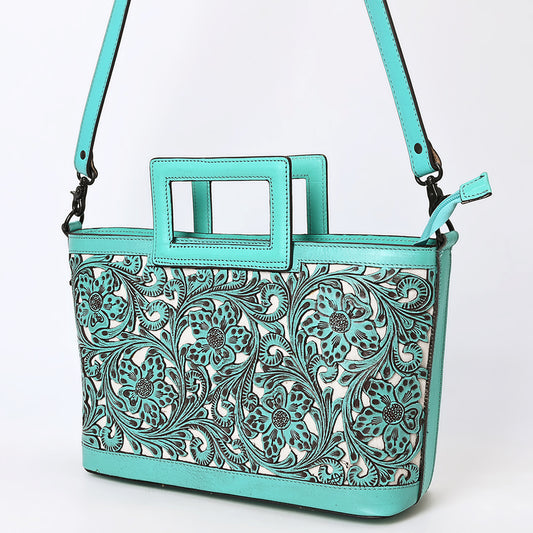 ADBGZ835 Hand-Tooled Leather Western Tote Handbag - Square Handle Design