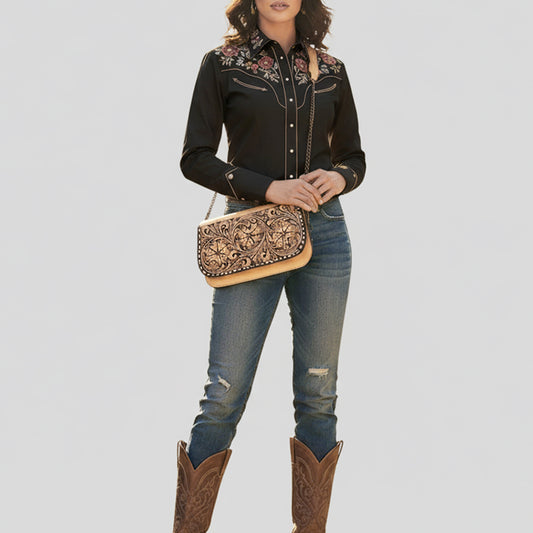 ADBGZ831 Hand-Tooled Leather Western Crossbody Bag Floral Chain Shoulder Purse