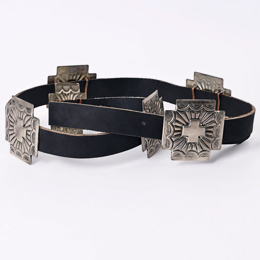 ADBLA103 Hand tooled Authentic German Silver Concho Belt