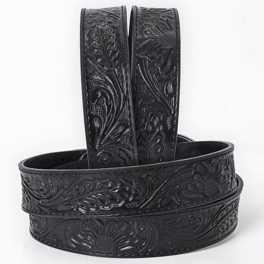 ADBL171 Hand-Tooled Black Floral Western Leather Belt with Oval Buckle