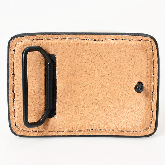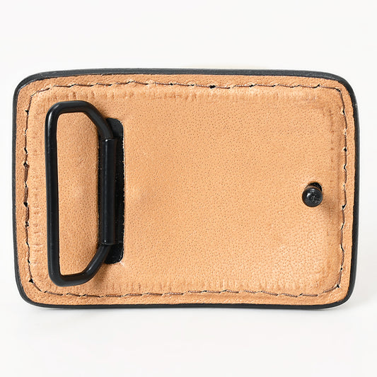 ADBLF162-BU Tooled Leather Buckle/Wallet - Ace of Hearts & Leaf Western Motif