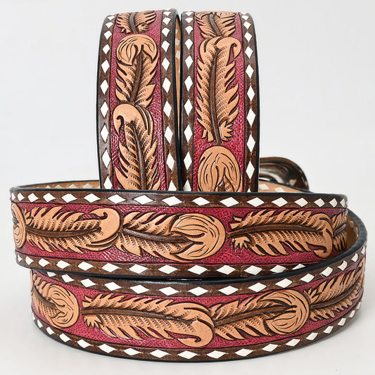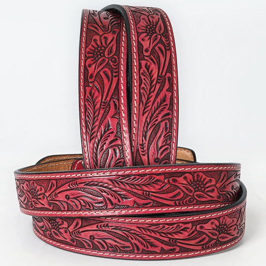 ADBLF233 Red Tooled Leather Belt with Matching Floral Buckle