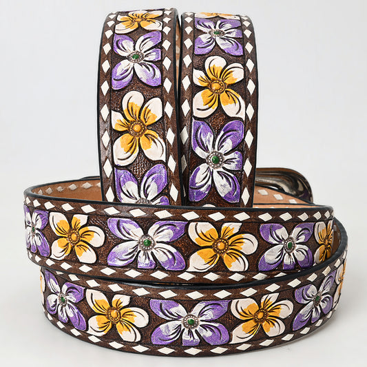 ADBLF218 Light Pink Hand-Tooled Leather Belt with Matching Floral Buckle
