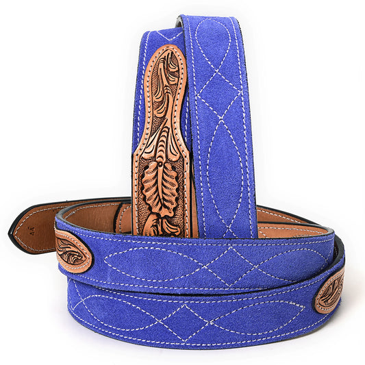 ADBLF334 Royal Blue Genuine suede Western Belt - Tooled Leather Inlay & Silver Buckle