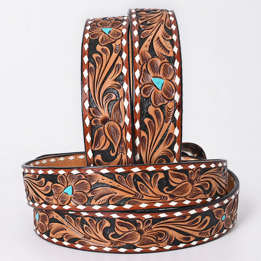 ADBLF342 Beautifully Floral Hand Tooled Genuine American Leather Belt Men and Women