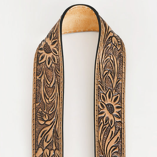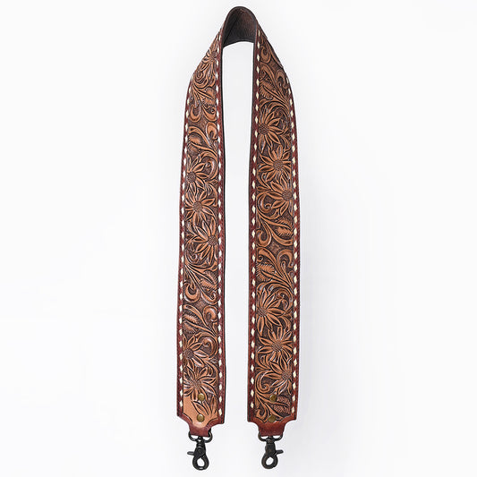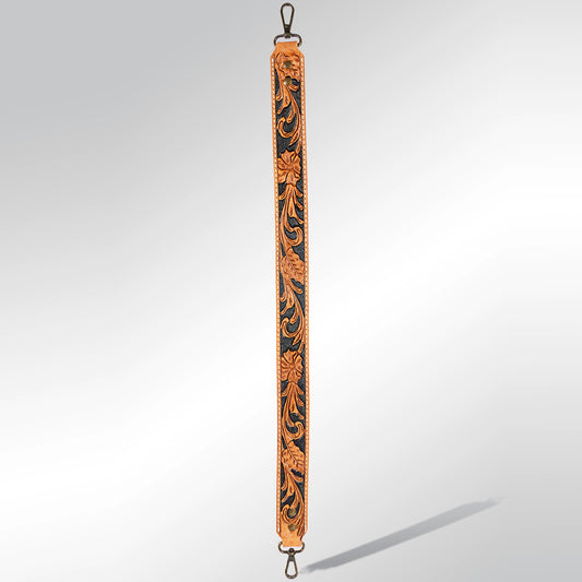 ADBT144 Hand-Tooled Floral Leather Bag Strap with Western Buckle - Adjustable Replacement Strap