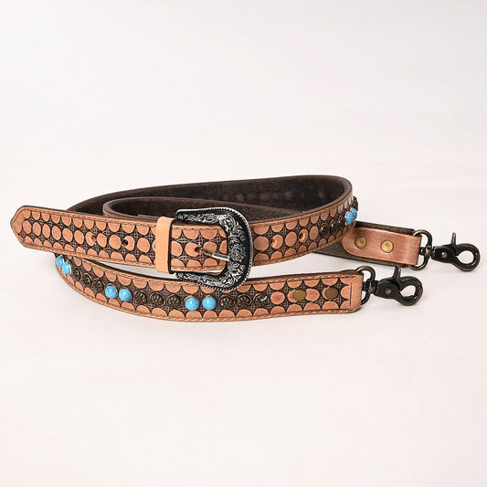ADBT146 Tooled Leather Bag Strap with Turquoise Beads & Western Buckle - Adjustable Handcrafted Replacement
