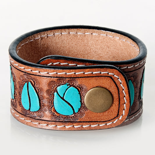 ADBRF188 Hand Tooled Leather Cuff - Turquoise Gemstone-Inspired Design