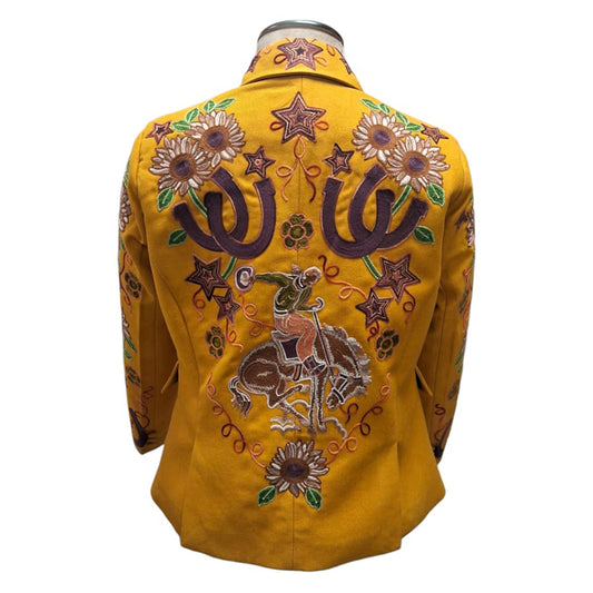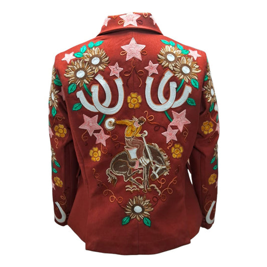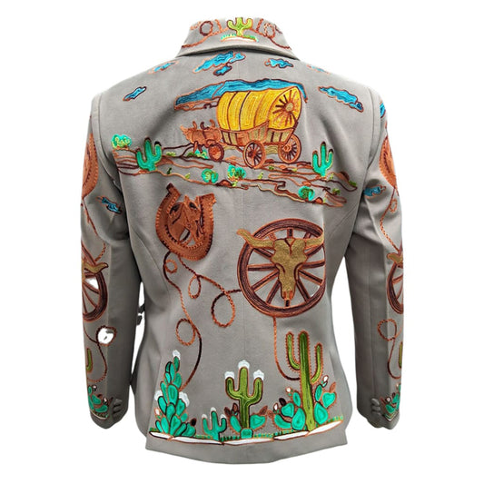 ADBZ069 Genuine leather Hand tooled Women Fabric Blazer dress jacket
