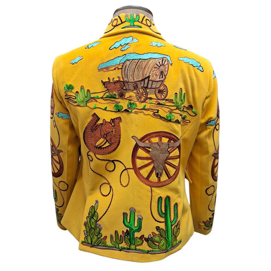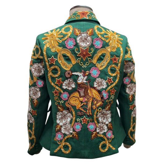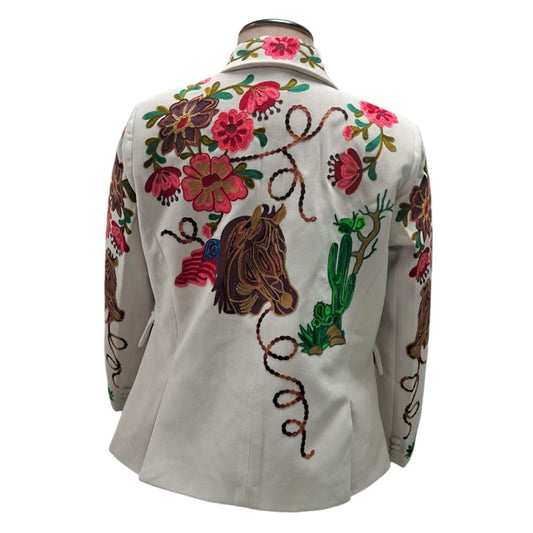 ADBZ061 Genuine Leather Hand tooled Women Fabric Blazer dress jacket