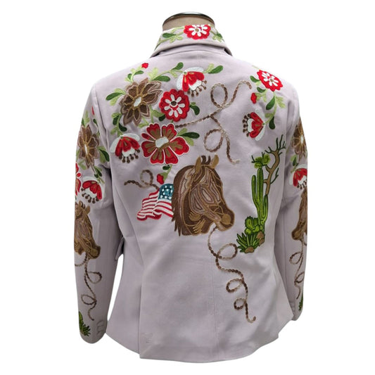 ADBZ067 Genuine leather Hand tooled Women Fabric Blazer dress jacket