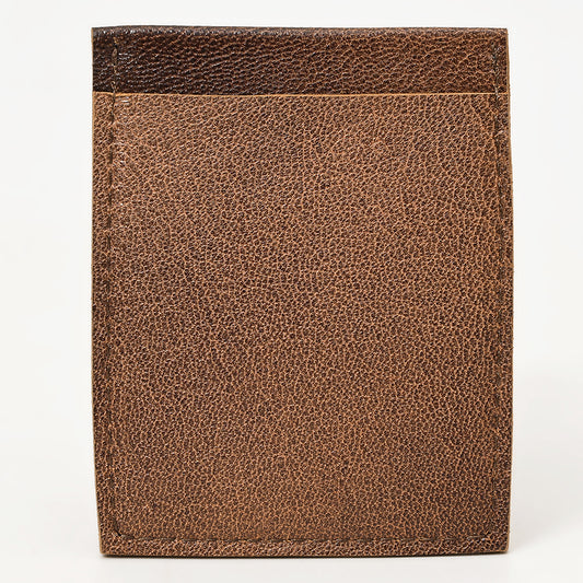 ADCCG102 Brown Hand-Tooled Leather Card Wallet - Vertical Floral Design with Diamond Accents