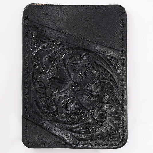 ADCCG108A Hand-Tooled Black Leather Card Holder - Western Floral Slim Vertical Wallet