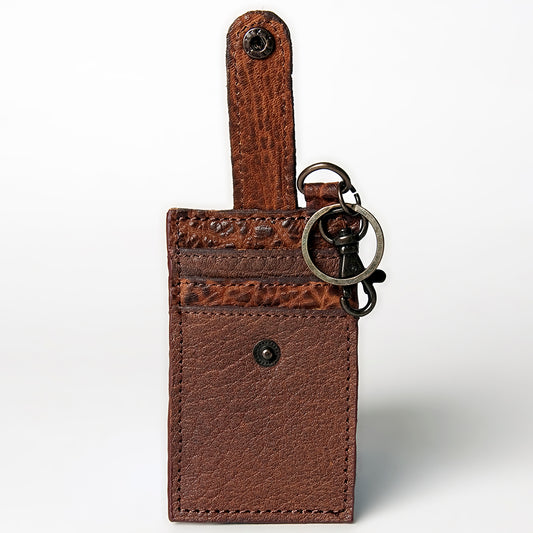 ADCCZ104 Embossed Brown Leather Keychain Cardholder Wallet - Snap & Clip