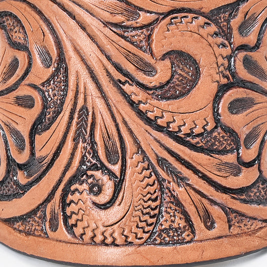 ADHC141 Tooled Leather Hair Band Clip Clutcher - Orange Lily with Green Scrolls | American Darling