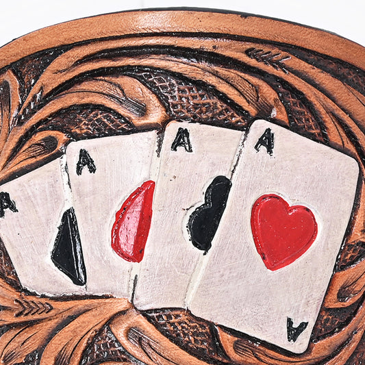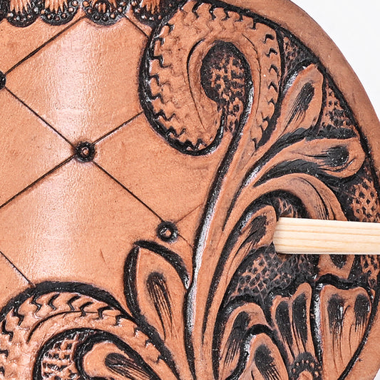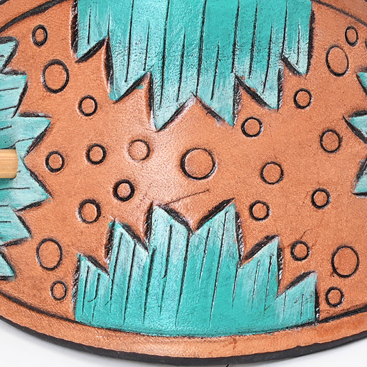 ADHC142 Western Hand-Tooled Leather Hair Band Clip Clutcher with Turquoise Accents