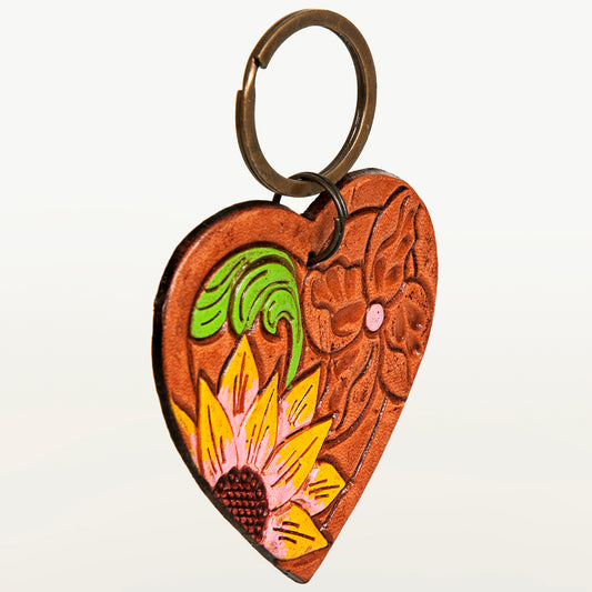 ADKR187 Hand-Tooled Leather Sunflower keyring Western Floral Scroll Design