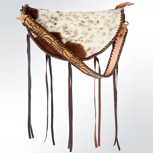 LC-ADBG552 Hair-On-Hide Saddle-Shaped Fringe Hobo Bag Western Tooled Leather Accents