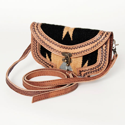 LC-ADBG825 Southwestern Mini Crossbody Bag with Tooled Leather Flap & Turquoise Accent