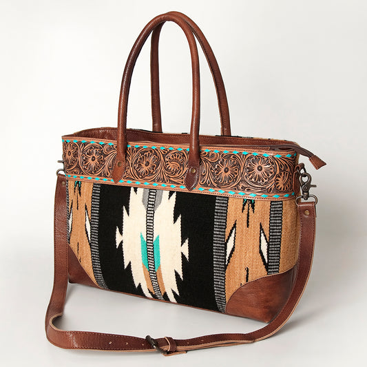 LC-ADBG827 Belle Western Clutch Bag with Tooled Leather, Saddle Blanket & Turquoise Concho