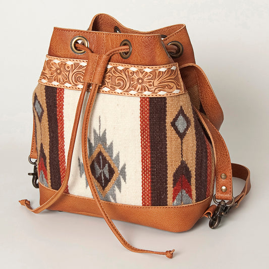 LC-ADBG862 Hand-Tooled Western Leather Bucket Bag with Wool Blanket Weave American Darling Drawstring Purse