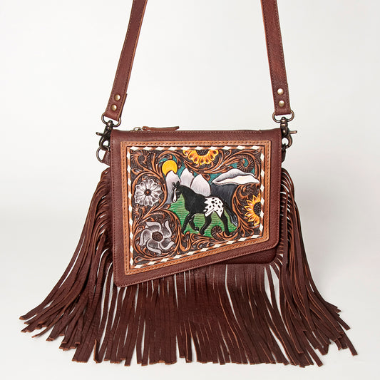 LC-ADBG846 Canteen Western Fringe Crossbody Bag Hand-Tooled Full Grain Leather by American Darling
