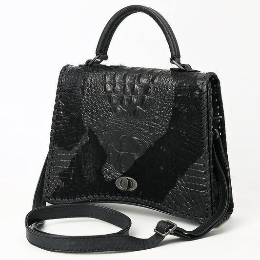 ADBG1516 American Darling Western Leather Messenger Bag with Hair-On Cowhide & Crocodile-Embossed Detailing