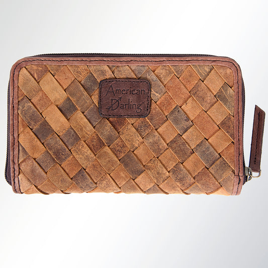 LC-ADBGI121 Woven Leather Western Wallet - Genuine Cowhide Zip-Around Purse