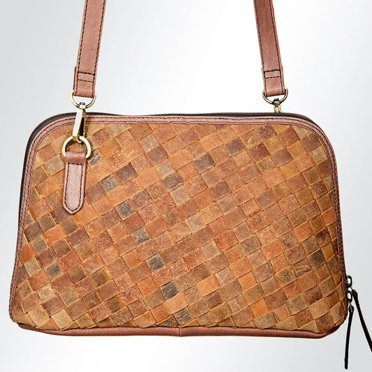 LC-ADBGI126A Woven Leather Crossbody Bag - Western Zip Purse with Adjustable Strap