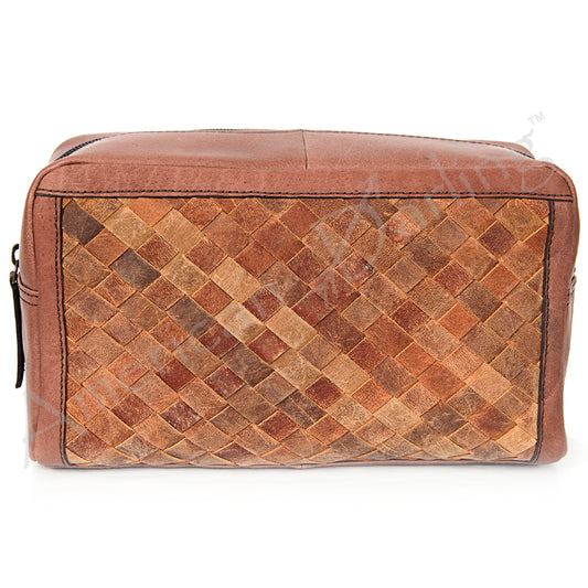 LC-ADBGI130 Woven Leather Toiletry Bag - Western Dopp Kit with Zip Closure