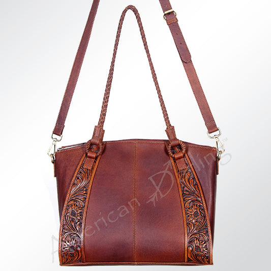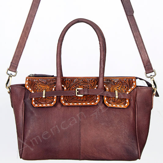LC-ADBGI146A Tooled Leather Western Tote - Genuine Brown Cowhide Shoulder Bag