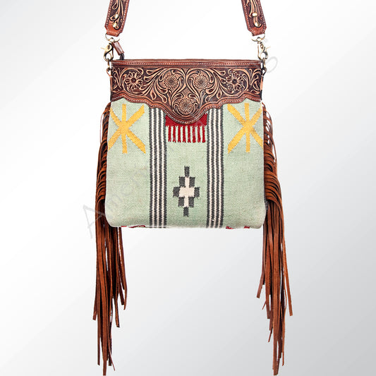 LC-ADBGK105 Envelope Style Tooled Leather Crossbody Bag - Fringe Western Purse