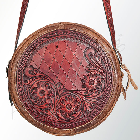 LC-ADBGK113B Round Tooled Leather Crossbody Bag - Floral Western Circle Purse