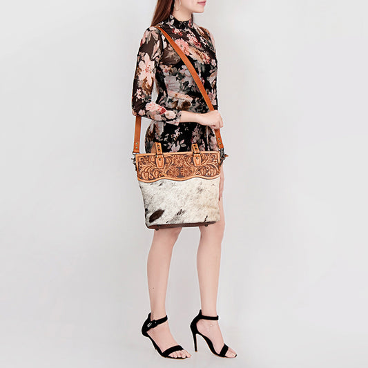 LC-ADBGS118 Western Tote Bag - Hair-On Leather with Whipstitch Trim & Detachable Strap
