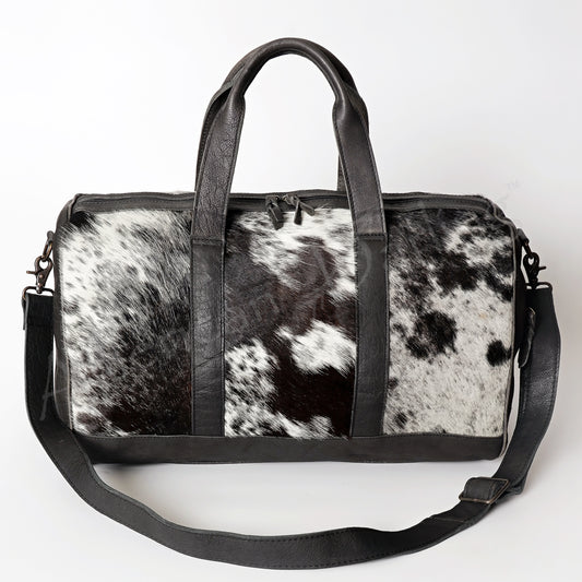 LC-ADBGS174BKW Black & White Cowhide Leather Duffle Bag - Western Travel Weekender