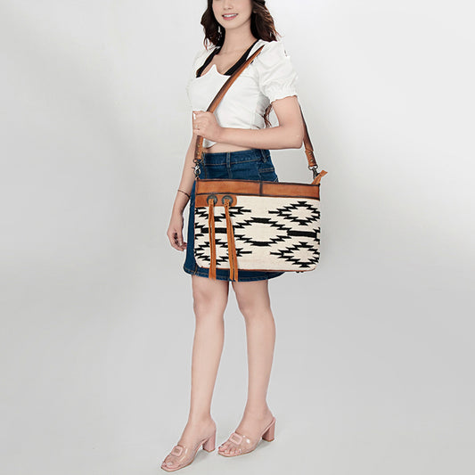 ADBG1031C American Darling Handwoven Saddle Blanket Hobo Bag - Western Leather Shoulder Bag