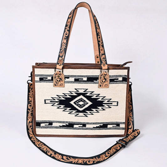 ADBG1033 American Darling Handwoven Saddle Blanket Tote Bag - Western Genuine Leather Purse