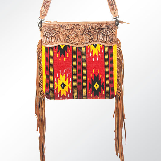 LC-ADBGZ279A Tooled Leather Flap Bag - Hair-On Hide Western Crossbody with Fringe