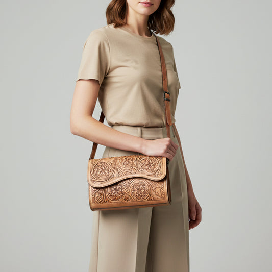 LC-ADBGZ475 Crossbody Hand Tooled Genuine Western Leather Women Bag