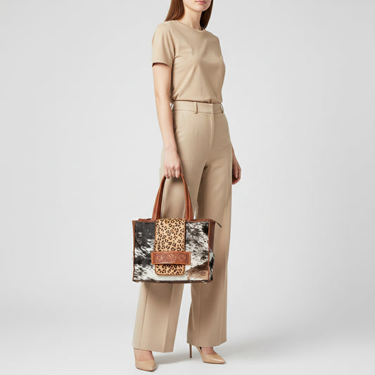LC-ADBGZ463 Leopard Print & Cowhide Western Tote Bag - American Darling