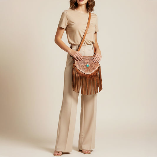 LC-ADBGZ484 Crossbody Hand Tooled Genuine Western Leather Women Bag